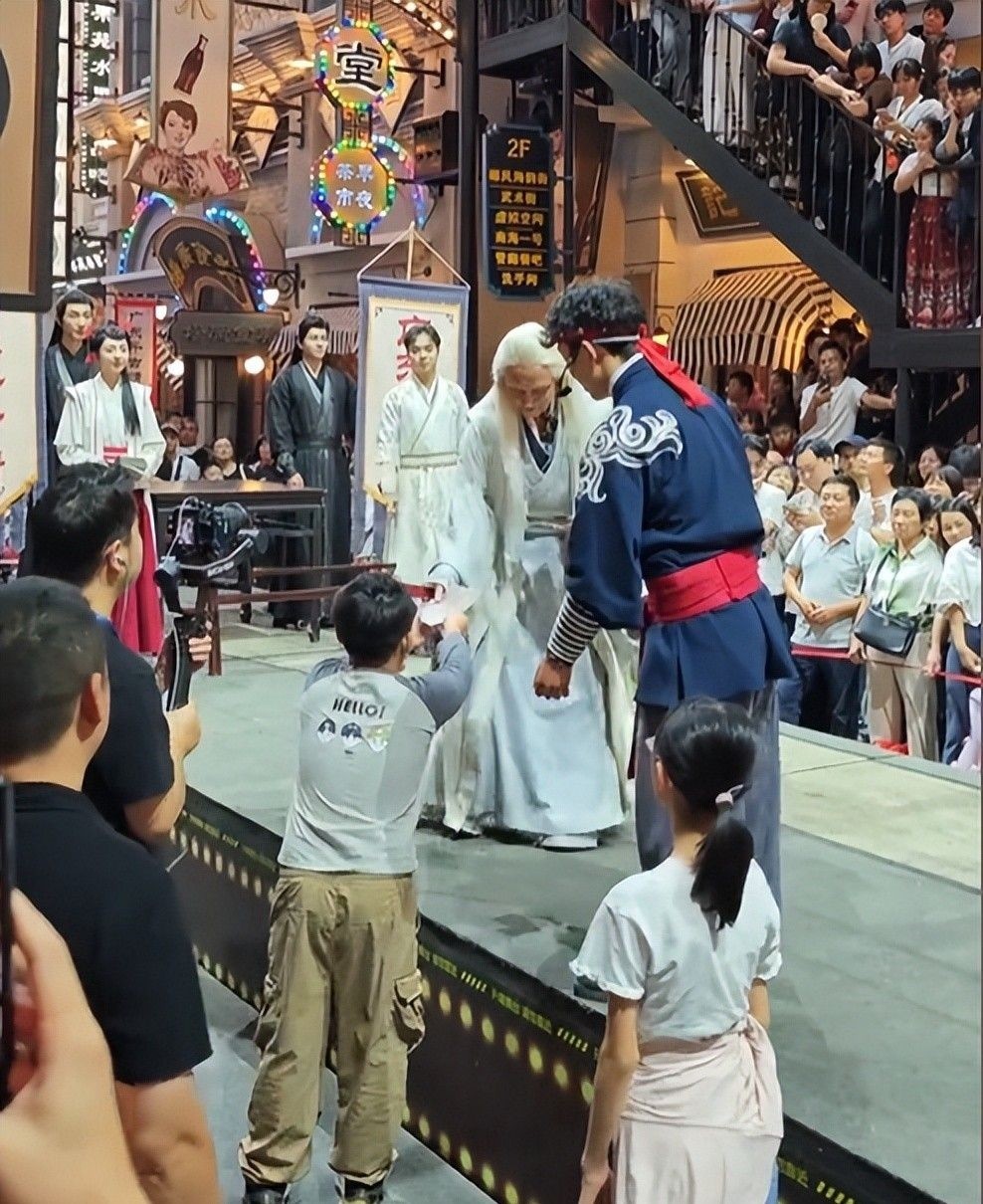 10月25日当天,广东气温高达三十多摄氏度,他身披三层厚重的传统戏服,在烈日下连续站岗数小时。中场休息时,助理递来冰镇矿泉水,他却先顾不上自己解渴,转身把随身携带的小扇子分发给排队等候的孩子们。